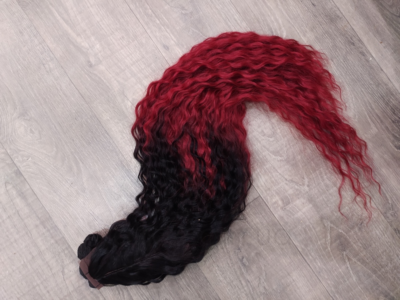 Афролоконы на трессе омбре черно-красный 70см (120г) с шапочкой